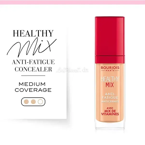 Le correcteur Healthy Mix de Bourjois efface instantanément tous les signes de fatigue pour un look reposé. Sa formule glissante se fond facilement dans la peau pour couvrir les cernes et les yeux gonflés sans laisser de stries ni de marques. Le mélange exclusif de vitamines C, E et B5 donne à la peau un éclat sain. Utilisez l’applicateur doux et floqué pour une application précise. Dessinez un triangle avec la base sous l’œil et sur d’autres zones sombres. Sculptez ensuite le milieu de votre front, l’arête de votre nez et la zone autour de vos sourcils, puis estompez le tout du bout des doigts.