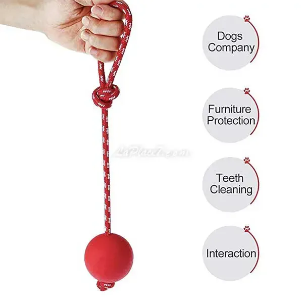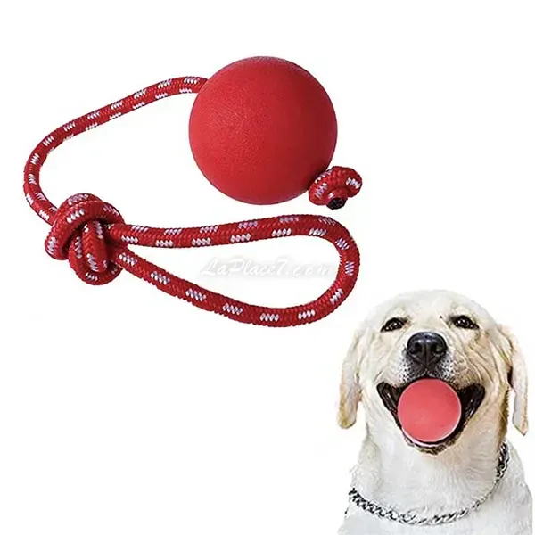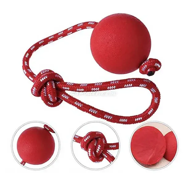 Balle solide en caoutchouc avec corde pour chien, Bomeipet