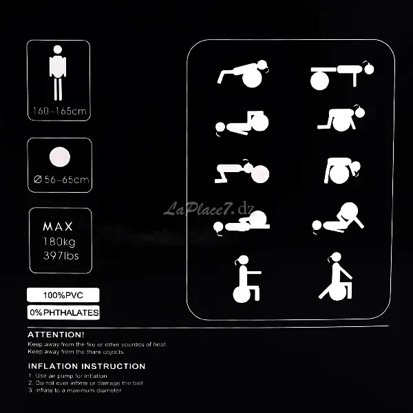 Ballon de gym et yoga avec tendeurs et pompe, Giant fit, 65 Cm