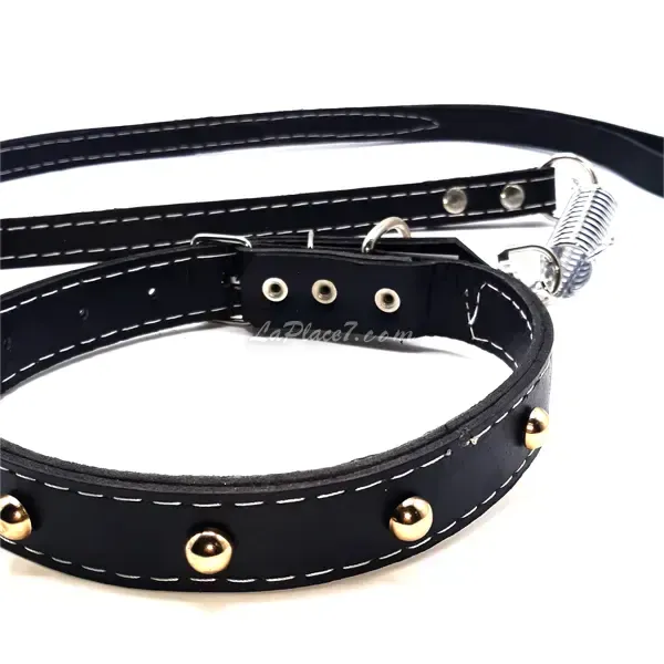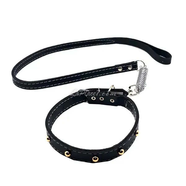 Collier à clous et laisse avec ressort en cuir pour chien, Laisse 1m, Collier 70cm