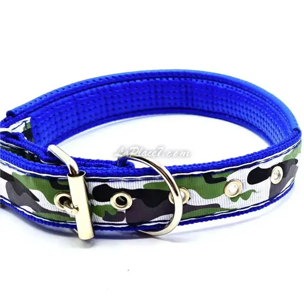 Collier en skaï et en tissu pour grand chien avec motif militaire, BisBis, 60 Cm