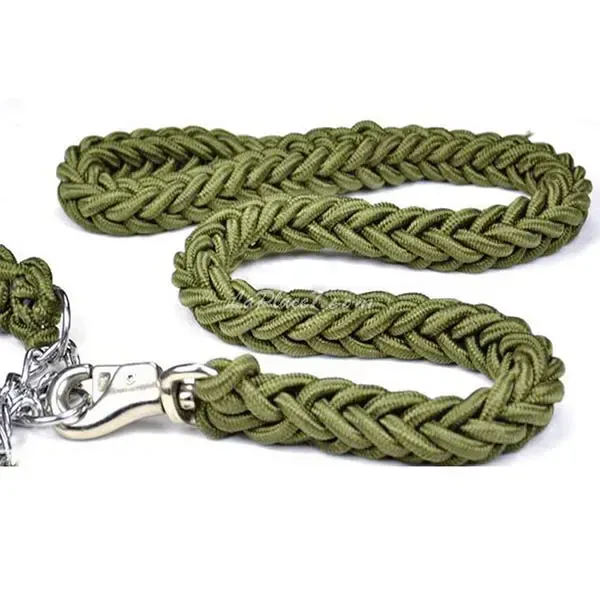 CONCEPTION PRÉFAITE : un anneau en D en acier inoxydable pour fixer l'étiquette et la laisse, une corde en nylon solide assortie à la chaîne en acier inoxydable et une boucle de sécurité pour une libération rapide et facile d'une seule main.