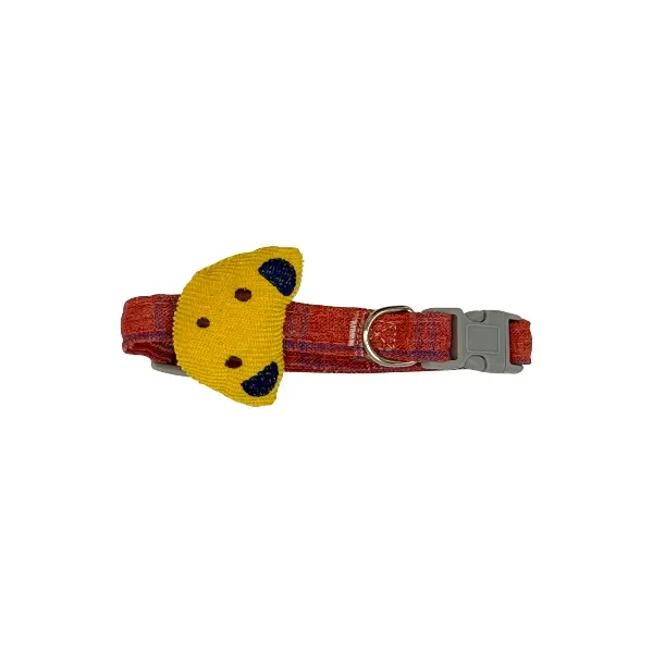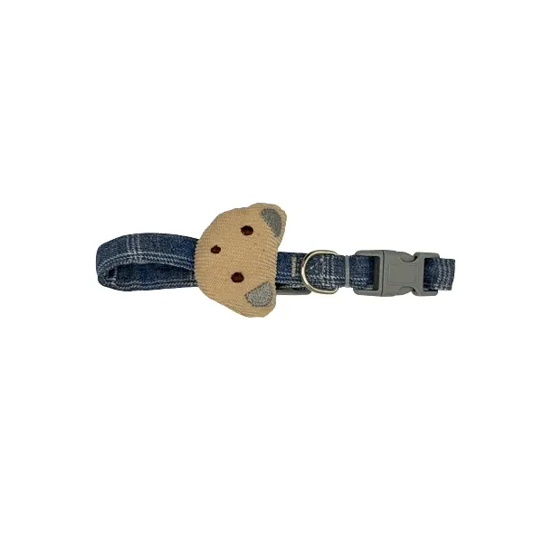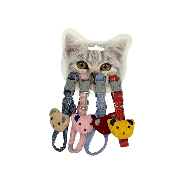 Collier pour chat en tissu avec tête de chat et un anneau en métal pour la laisse