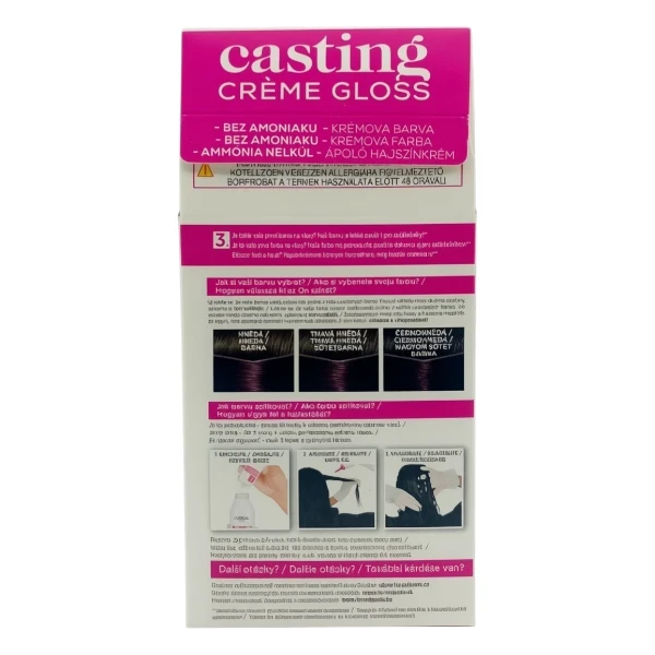 La coloration pour cheveux L'Oréal Casting Crème Gloss 316 Vadszilva Violet Foncé est une teinture semi permanente sans ammoniaque qui offre une couleur intense et brillante tout en respectant la fibre capillaire.