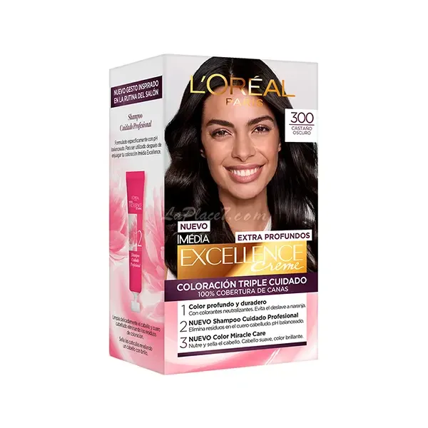 Excellence Crème 300, un châtain foncé profond naturel qui convient aux cheveux blond clair à noir