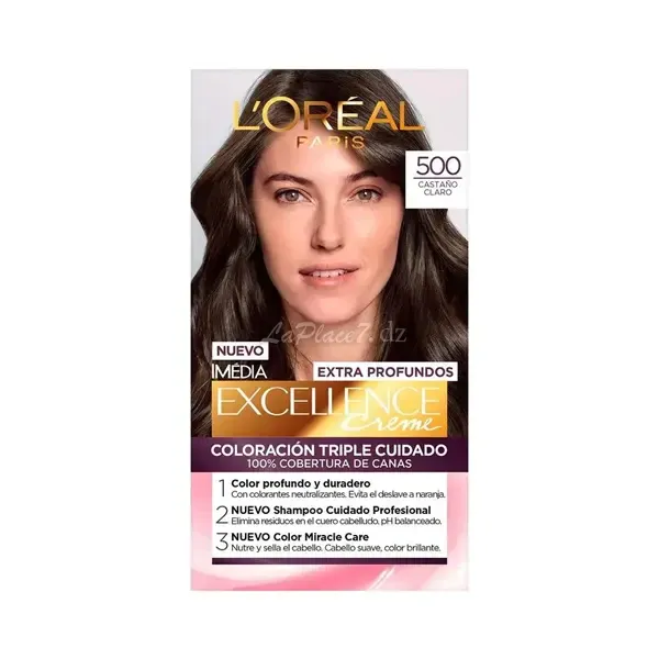 La coloration capillaire extra profonde Imédia Excellence de L'Oréal Paris est idéale pour donner à vos cheveux un aspect spectaculaire et obtenir la couleur que vous souhaitez. Son ton châtain clair 500 les rendra attrayants.