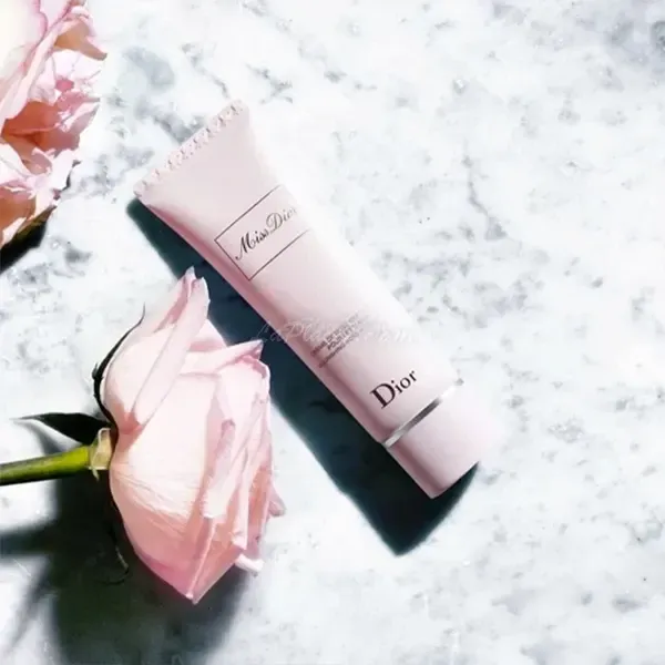 La crème de rose pour les mains Miss Dior est un soin hydratant intense à ne plus quitter, peut se glisser dans un sac ou se poser sur le bureau.