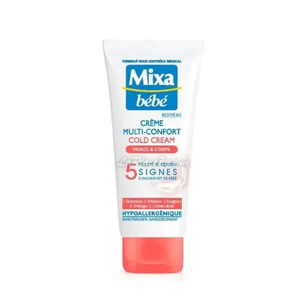 La Crème Multi-confort enrichie en Cold cream, apaise les 5 signes d’inconfort de la peau sèche de bébé : Sécheresse, irritations, rougeurs, grattage et croûtes de lait légères.