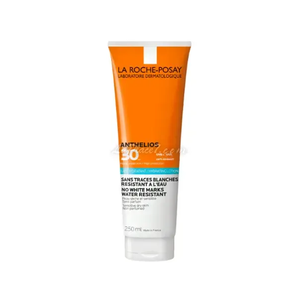 Crème solaire en lait hydratant pour peaux sèches et sensibles, Anthelios spf30, La roche-posay