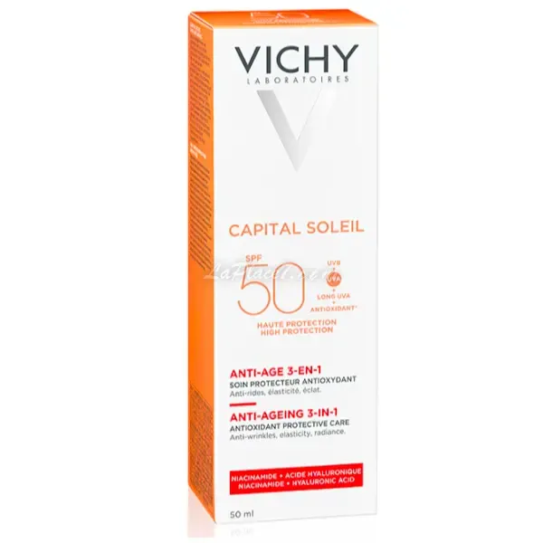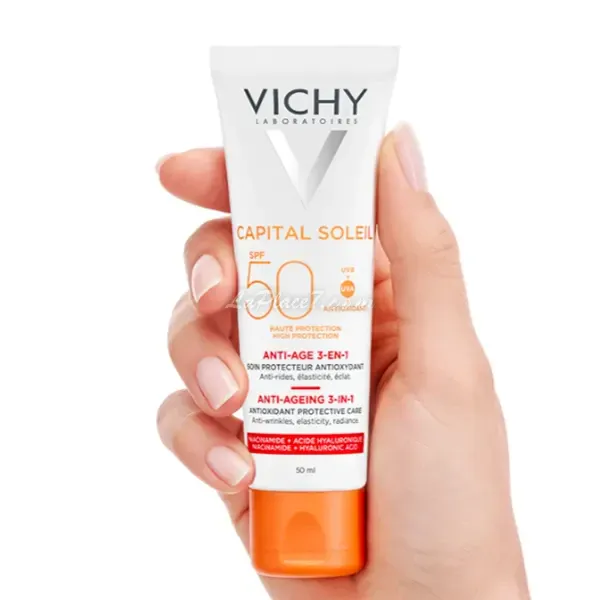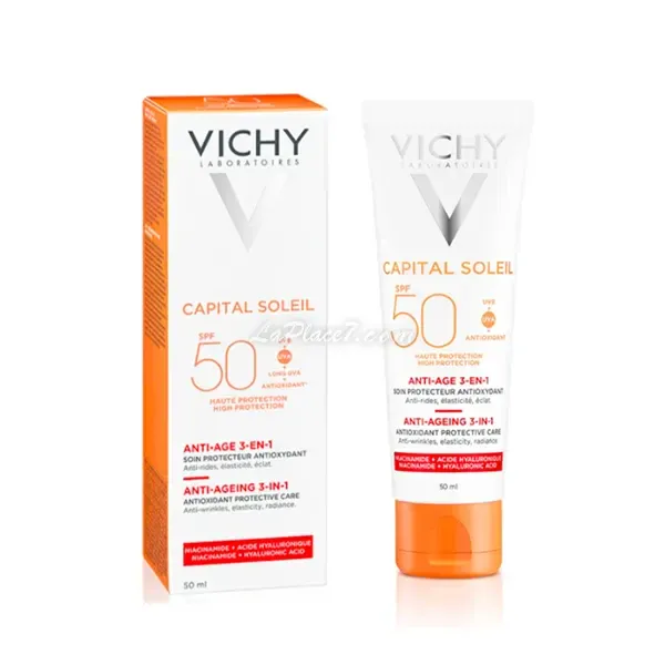Produit de protection solaire Primul de Vichy avec un filtre à long spectre contre le razelor UV + antioxydant d'origine naturelle pentru ou écran solaire complet