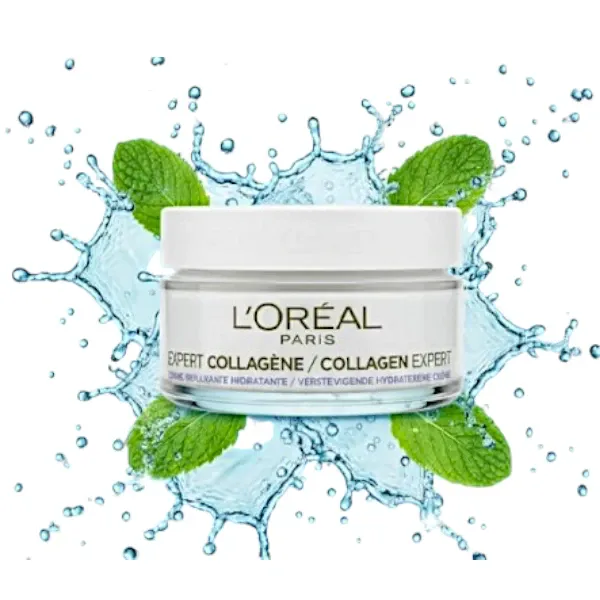 Crème visage repulpante hydratante avec 5 % de glycérine et fractions de peptides de collagène, Lisse les rides, renforce l’élasticité de la peau et hydrate pendant 24 h, Expert Collagène, L’Oréal, 50