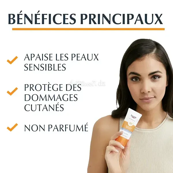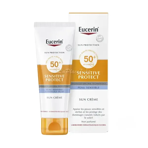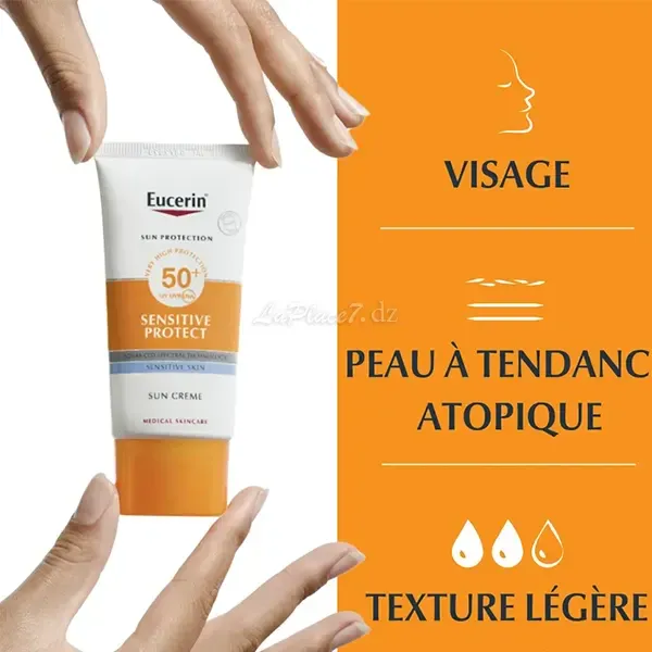 Eucerin Sun Sensitive Protect Cream SPF50+est une crème solaire visage pour les peaux sèches et sensibles.