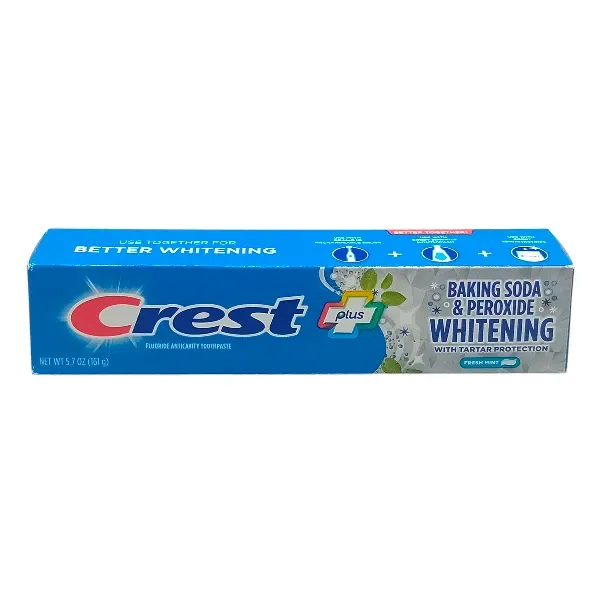 Dentifrice blanchissant au bicarbonate de soude et au peroxyde, Menthe fraîche, Sans gluten, Crest, 161 g