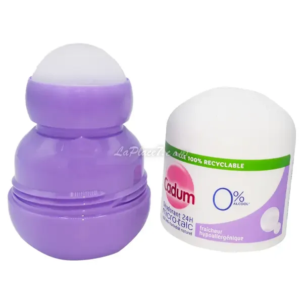 Déodorant à bille pour femme anti-humidité, 0% d'alcool, Micro-talc, Cadum, 24H