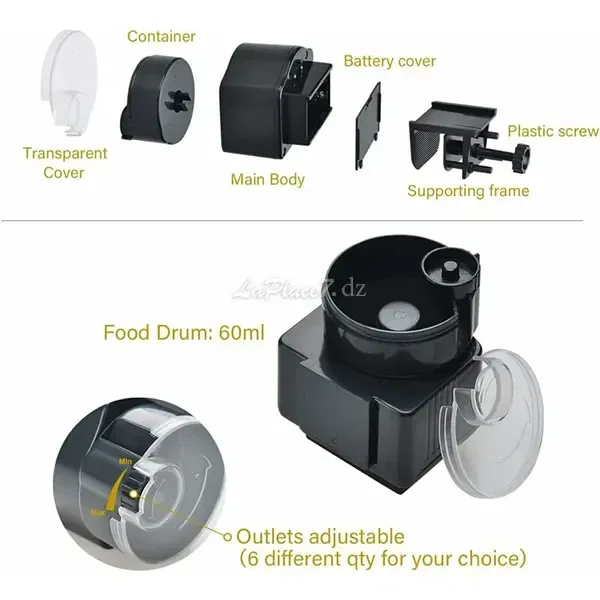 Le distributeur automatique de poissons est idéal pour les aquariums et les aquariums domestiques, car il permet de régler l'heure une fois toutes les 12 heures ou une fois toutes les 24 heures.