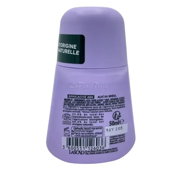 Le déodorant bille bio 48 h à l'açaï d'Ushuaïa est un soin naturel qui allie efficacité et respect de la peau. Ce déodorant de 50 ml est composé à 99 % d'ingrédients d'origine naturelle et vous offre une protection longue durée tout en préservant votre bien-être. Sa formule bio certifiée prend soin de votre peau et vous laisse une sensation de fraîcheur agréable toute la journée.