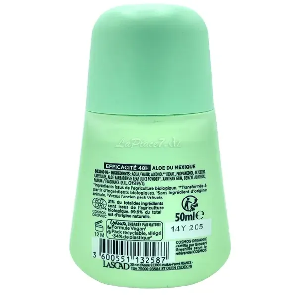 Déodorant à bille naturel à l'aloé du mexique pour femme, Certifié BIO, 48h, Ushuaia, 50 ml