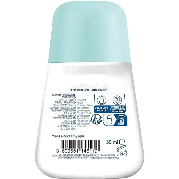 Déodorant en bille enrichi en extraits de probiotique qui respecte l environnement microbiome de votre peau.