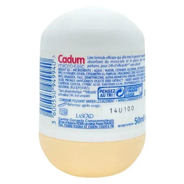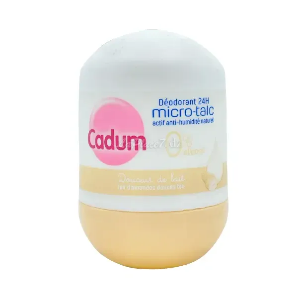 Déodorant à bille pour femme au lait d'amandes douces bio, Actif anti-humidité naturel, 24h, Micro-talc, , 0% Alcool, Cadum, 50 ml