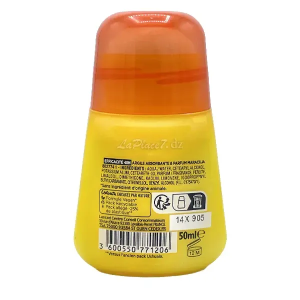 Plongez au cœur du Brésil avec le Déodorant à Bille - Argile Absorbante & Parfum Maracuja - Ushuaïa - 50 ml, une véritable invitation au voyage sensoriel. Inspirée par les rituels de beauté ancestraux de Bahia, la marque Ushuaïa a formulé ce déodorant en associant une argile naturellement purifiante à la fraîcheur fruitée du maracuja.