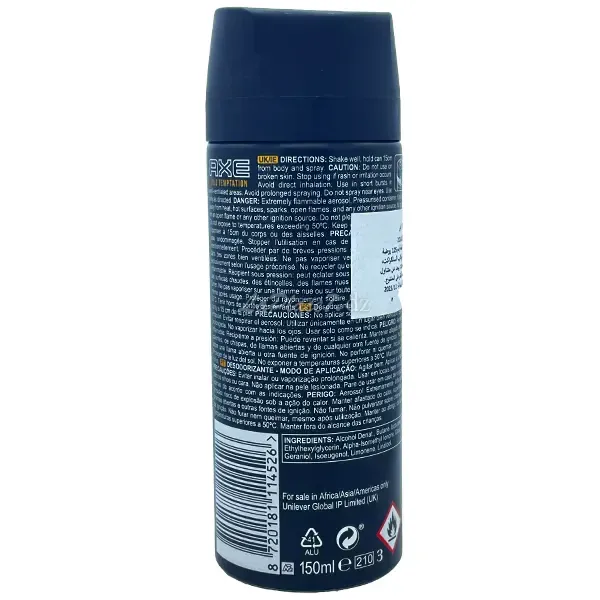 Passez rester frais au niveau supérieur. Vivez cette vie quotidienne fraîche. Vous ne savez jamais ce qui pourrait arriver, vous avez donc besoin d'un spray corporel déodorant qui vous fera sentir bon toute la journée, tous les jours. Grâce à sa technologie de protection contre les odeurs, le déodorant corporel amélioré AX Gold Temptation le contrôle. Le parfum irrésistible d'agrumes, d'épices, de chocolat et d'ambre vous garde frais et préparé à 100 %. Toute la journée. 150 ml.
