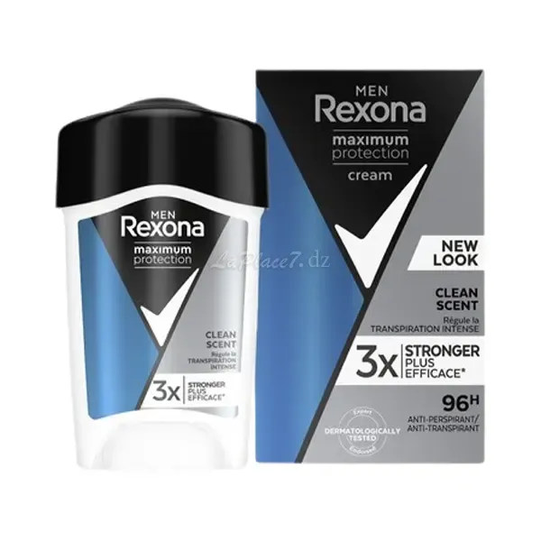 Rexona Maximum Protection Déodorant anti-transpirant Clean Scent protège 3 fois en cas de stress, de chaleur et de mouvement.