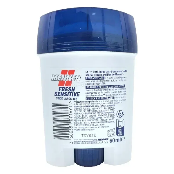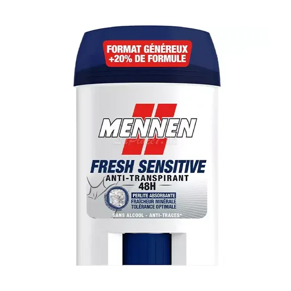 Déodorant stick pour homme anti-transpirant 48h, Anti-traces et sans alcool, Fresh sensitive, Mennen, 60 ml
