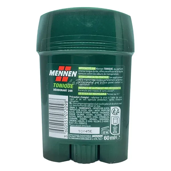 Déodorant stick pour homme, Tonique, Anti-traces, Sans alcool, 24h, Mennen, 60ml