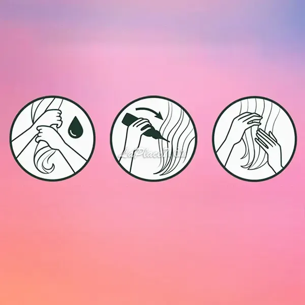 Massez les longueurs pendant 10 secondes. Vous pouvez ressentir une légère sensation de chaleur lorsque le produit commence à agir. Rincez et séchez comme vous le souhaitez.