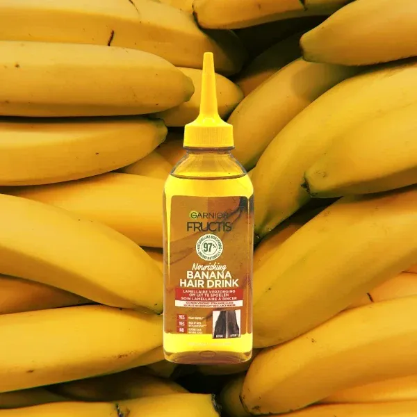 Hair Drink Banane nourrit et adoucit les cheveux, les enveloppant d'un parfum sucré.