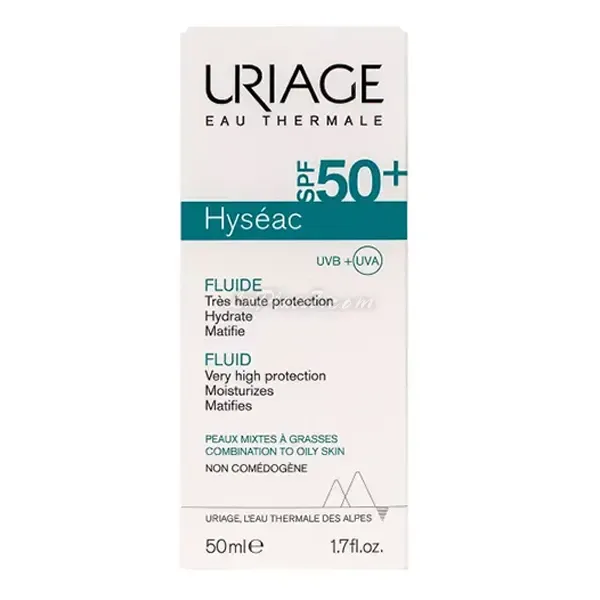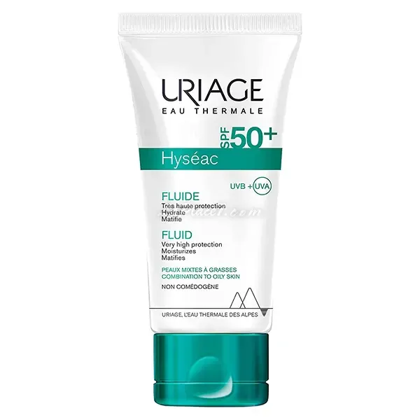 HYSÉAC Fluide SPF50+ associe une protection solaire efficace et des propriétés spécifiquement adaptées aux peaux mixtes à grassesIl offre une protection UVA-UVB très performante grâce à un nouveau complexe filtrant sans octocrylène très efficace