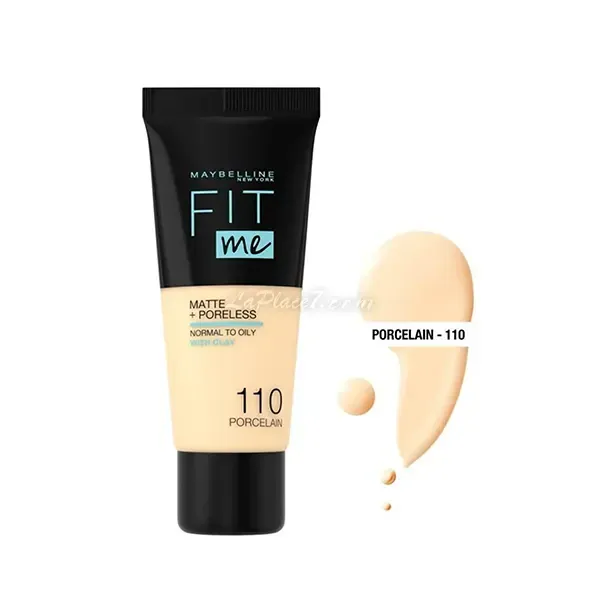 Maybelline Fit Me Fond de Teint 110 Porcelaine 30ml est un fond de teint fluide ton sur ton matifiant pour un grain de peau affiné et un teint sans défaut