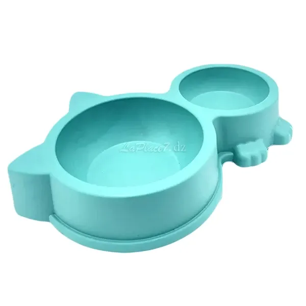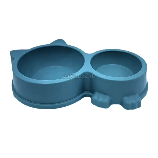 Gamelle double en plastique pratique pour chat, avec un design mignon en forme d’oreilles. Idéale pour l’eau et la nourriture.