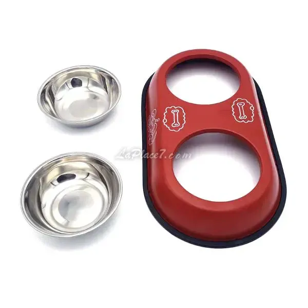 Gamelle avec 2 bols en inox séparables pour les chats et les petits chiens