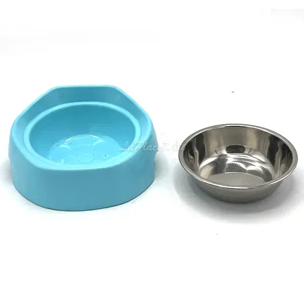 Gamelle pratique avec support en plastique antidérapant et bol en inox amovible de 11 cm, facile à nettoyer, idéale pour la nourriture ou l’eau des petits chiens et chiots.