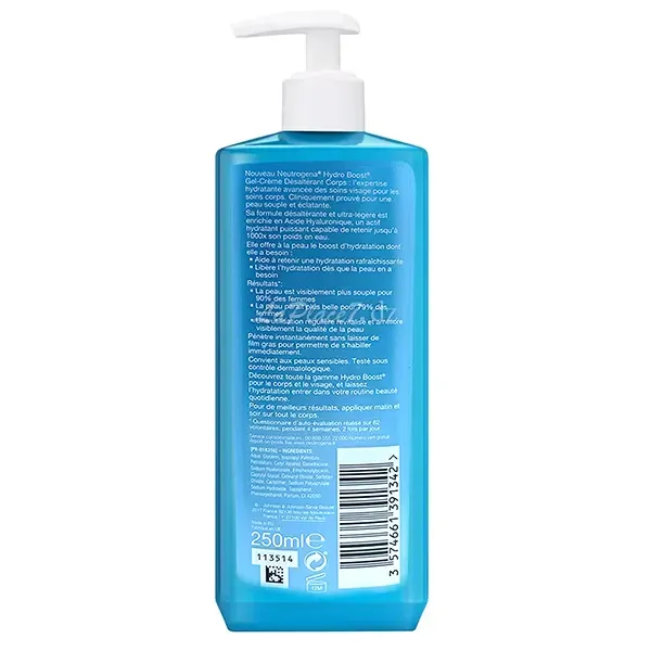 Le gel-crème corps hydratant & désaltérant Neutrogena Hydro Boost, enrichi en acide hyaluronique, offre à la peau une hydratation intense, fraîche et durable inspirée des soins visage, pour une peau souple, éclatante et visiblement plus belle dès l'application, sans film gras et avec une absorption instantanée.