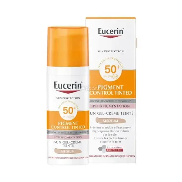 Pigment Control Gel Crème Teinté SPF50+ Medium de Eucerin est un soin solaire conçu pour aider à réduire les taches pigmentaires notamment grâce au Thiamodol breveté qui permet de les couvrir grâce à des pigments colorés.