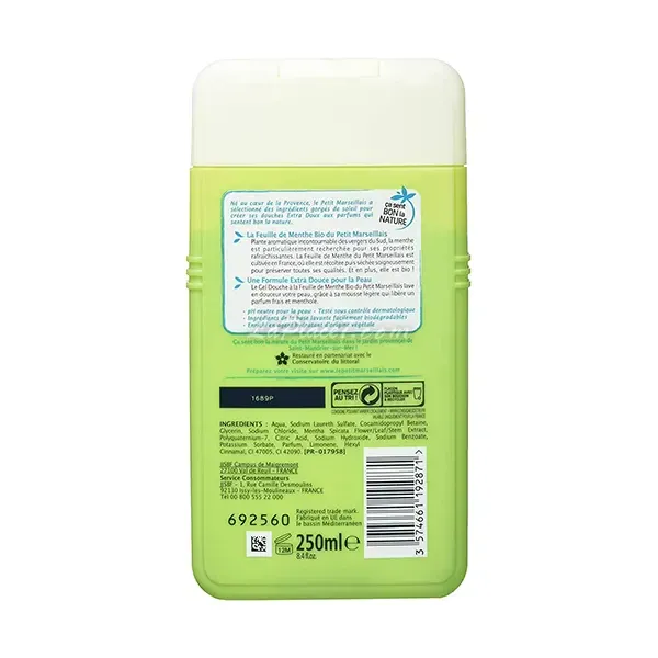 Gel douche extra doux au feuille de menthe Bio, Le Petit Marseillais