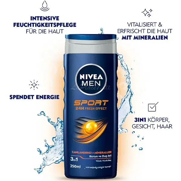 Profitez du gel douche rafraîchissant NIVEA MEN Sport et découvrez une sensation revitalisante. La formule au pH doux et aux minéraux nourrit intensément votre peau et assure une fraîcheur longue durée.