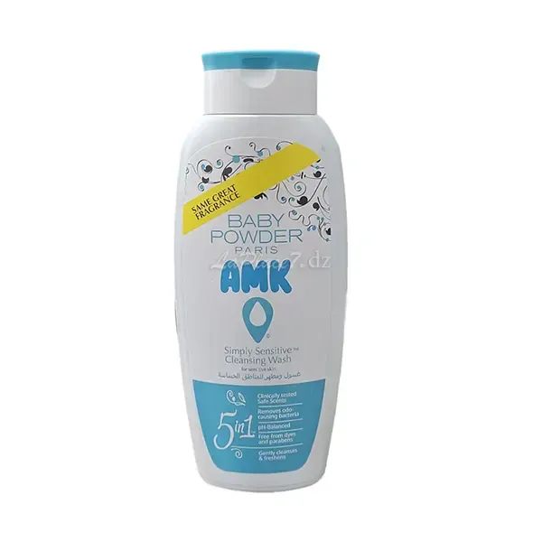 Gel nettoyant pour zones intimes, 5 en 1, AMK, Baby powder, 250ml