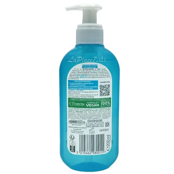 Gel nettoyant purifiant pour peaux mixtes à grasses, Anti-imperfections, PureActive, Garnier, 200ml