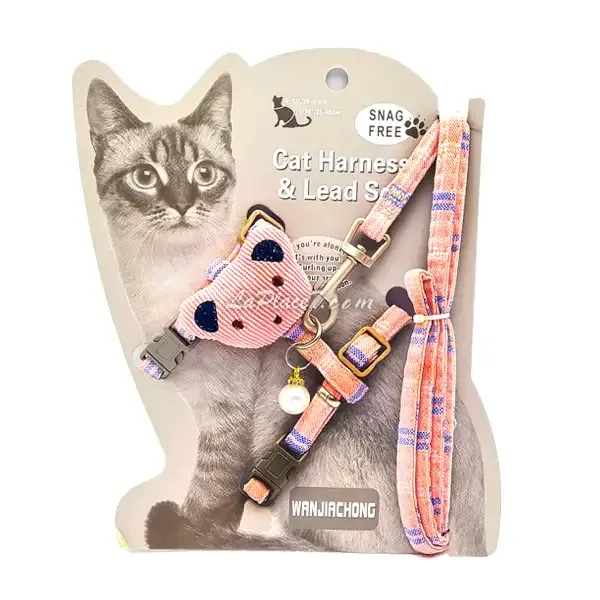 Harnais et laisse pour chat avec tête de chat, Pet Outlet