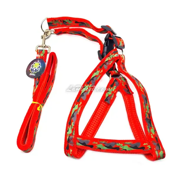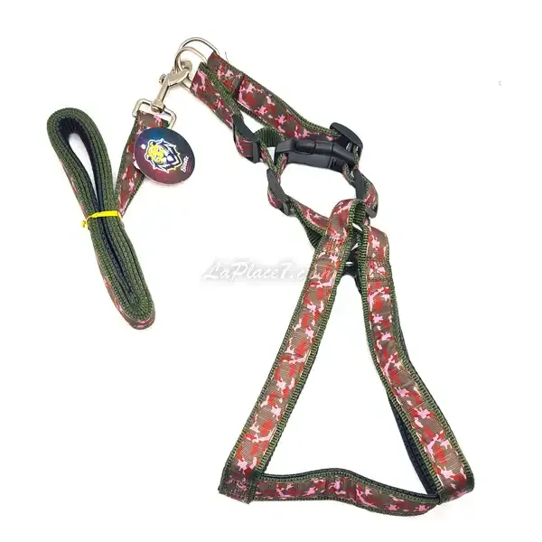 Harnais et laisse pour chien avec motif militaire, Chien moyen, BisBis, 120cm
