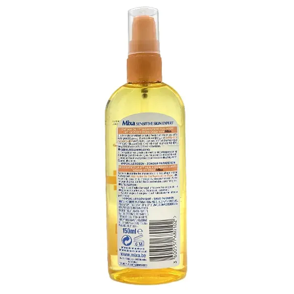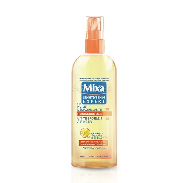 Huile démaquillante pour peaux sensibles et très sèches, Huiles de carthame et de rose, Sans paraben, Waterproof Make-up, Sensitive skin expert, Mixa, 150ml