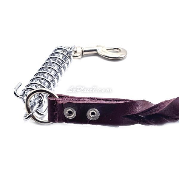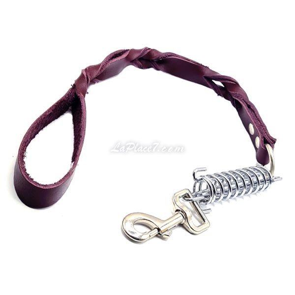 La laisse en cuir tressée avec ressort pour chien est, par ailleurs, équipée d'un ressort amortisseur qui va permettre d'amortir les à coups d'un chien vif ou puissant. Elle supprime le mal aux bras et aux épaules du maître Sa poignée en cuir est très confortable à tenir en main.