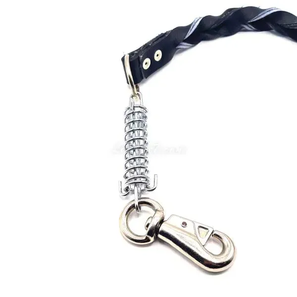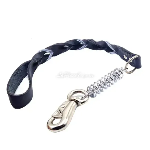 La laisse en cuir tressée avec ressort pour chien est, par ailleurs, équipée d'un ressort amortisseur qui va permettre d'amortir les à coups d'un chien vif ou puissant. Elle supprime le mal aux bras et aux épaules du maître Sa poignée en cuir est très confortable à tenir en main.
