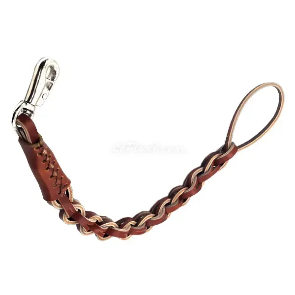 Laisse en cuir tressée très solide pour un grand chien.