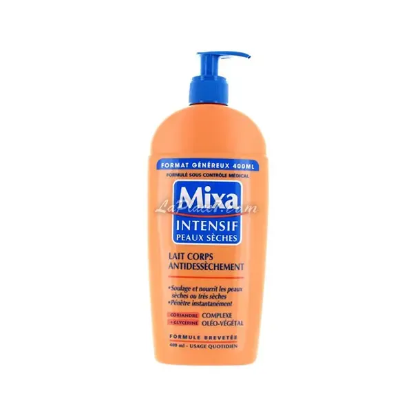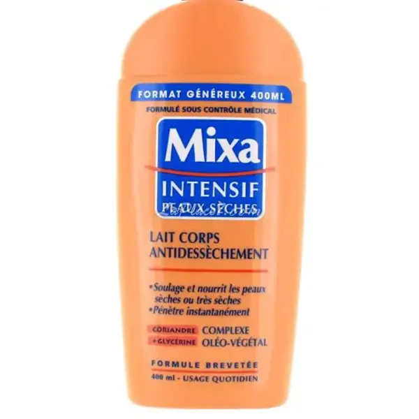 | MIXA Intensif peaux sèches Lait corps anti-dessèchement Soulage et nourrit les peaux sèches ou très sèches Pénètre instantanément Coriandre + glycérine Complexe oléo-végétal 400ml De l'huile de coriandre pour nourrir la peau intensément. De l'huile végétale, pour l'apaiser la peau et lui apporter confort et douceur. De la Glycérine pour maintenir un taux d'hydratation optimal et protéger la peau. Pratique à utiliser grâce à sa pompe doseuse, ce lait s'applique chaque jour et convient parfaitement aux adultes et aux enfants. D'une texture très légère et non collante, sa formule soulage et nourrit les peaux sèches ou très sèches, pénètre instantanément. CONSEILS D'UTILISATION Pratique à utiliser grâce à sa pompe doseuse, ce lait s'applique chaque jour et convient parfaitement aux adultes et aux enfants. Ne pas appliquer sur le visage. |