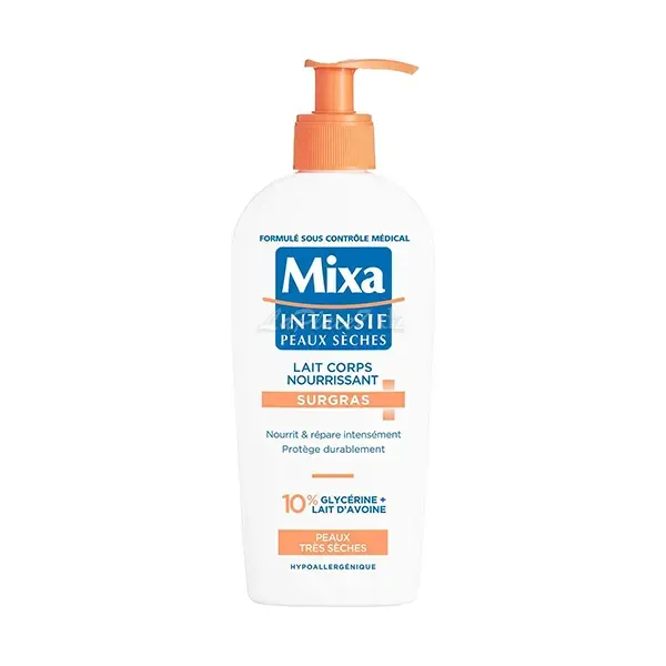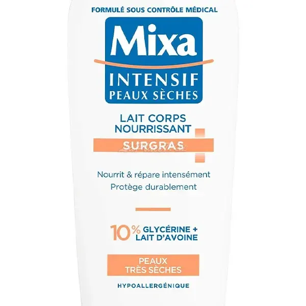 Lait corps nourrissant pour peaux très sèches, 10% Glycérine + lait d'avoine, Surgras, Intensif peaux sèches, Mixa, 250ml