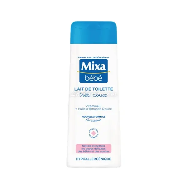 Le lait de toilette très doux Mixa bébé est à base de vitamine E et d'huile d'amande douce. Ce produit hypoallergénique nettoie et hydrate les peaux délicates, qu'il s'agisse de celles des bébés ou des adultes.
